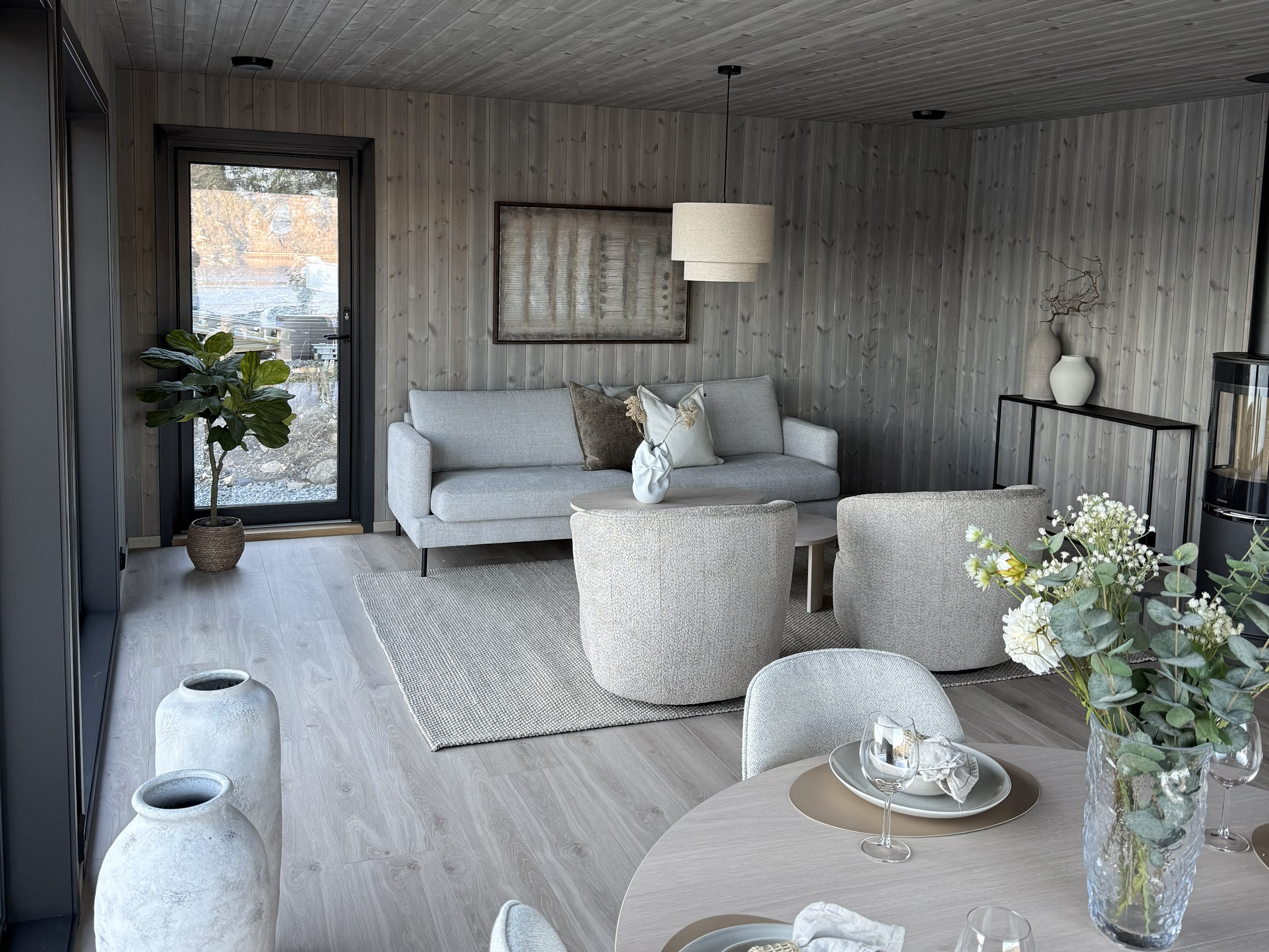 Hytta er møblert i samarbeid med Bohus Egersund, og møblementet kan – om ønskelig – kjøpes til en svært fordelaktig pris.